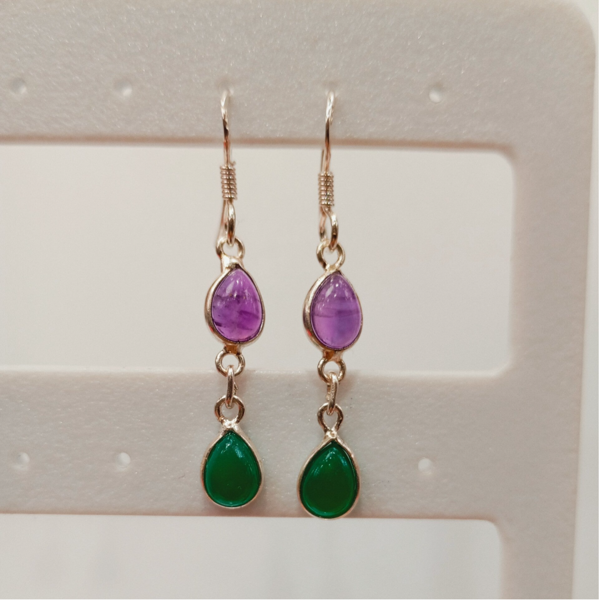 Boucles d'oreilles en ARGENT 925 avec 2 pierres naturelle: Améthyste et Onyx verte
