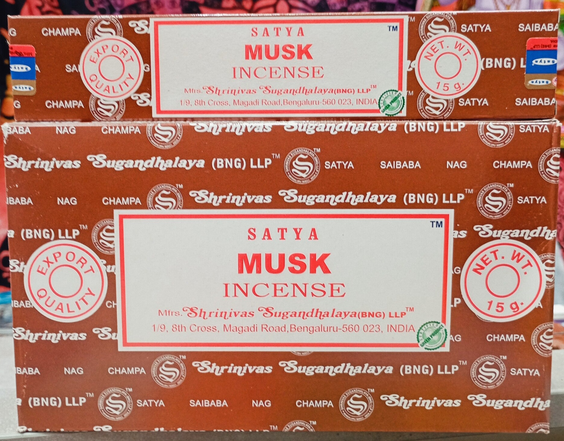 Encens Indien Musk Satya - Boîte de 15g, Roule à la Main et Naturel